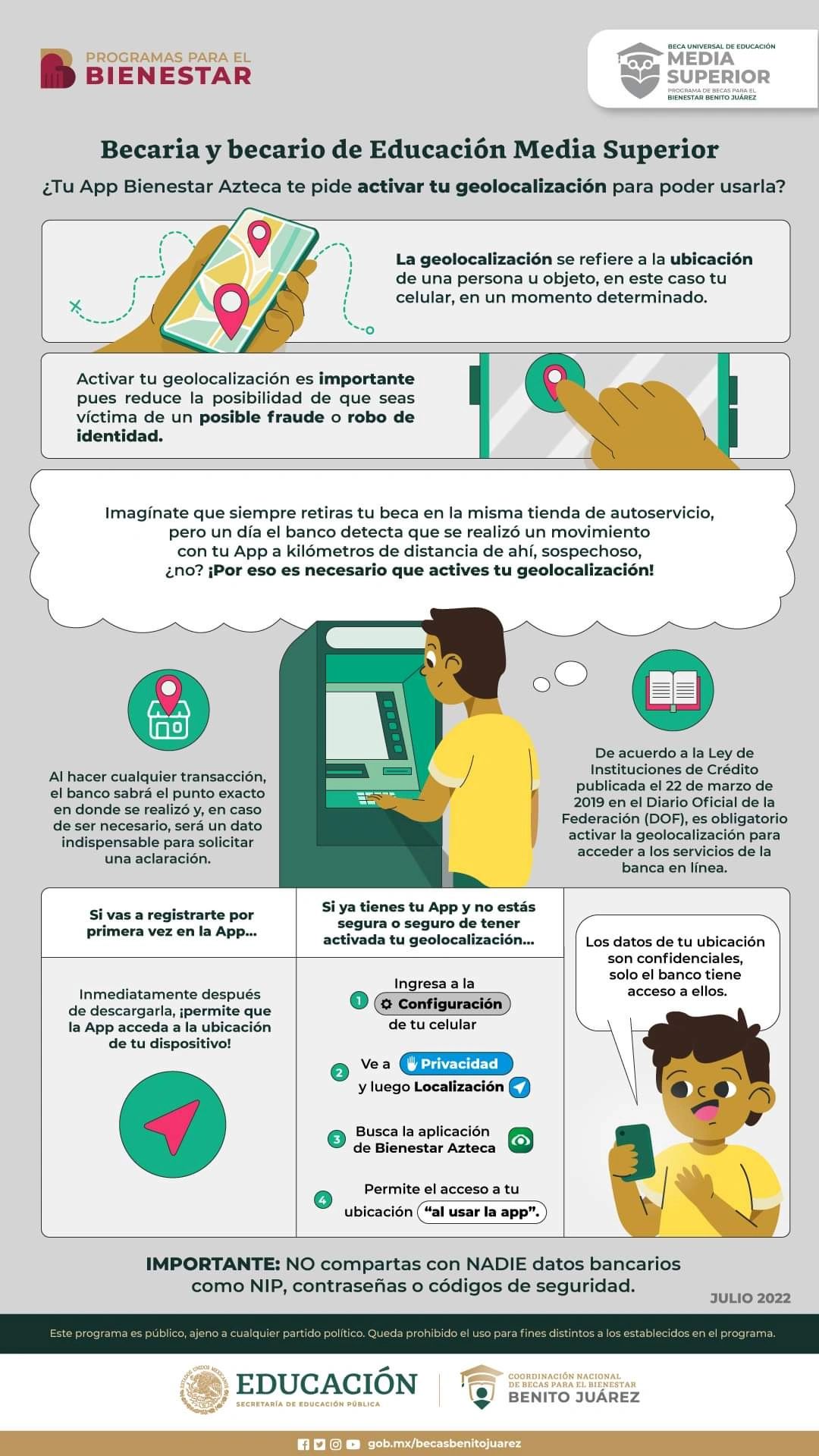 En este sentido, por razones de seguridad, es relevante que las personas beneficiarias cuenten con un número celular y equipo con tecnología para descargar la aplicación bancaria y así recibir sus pagos.